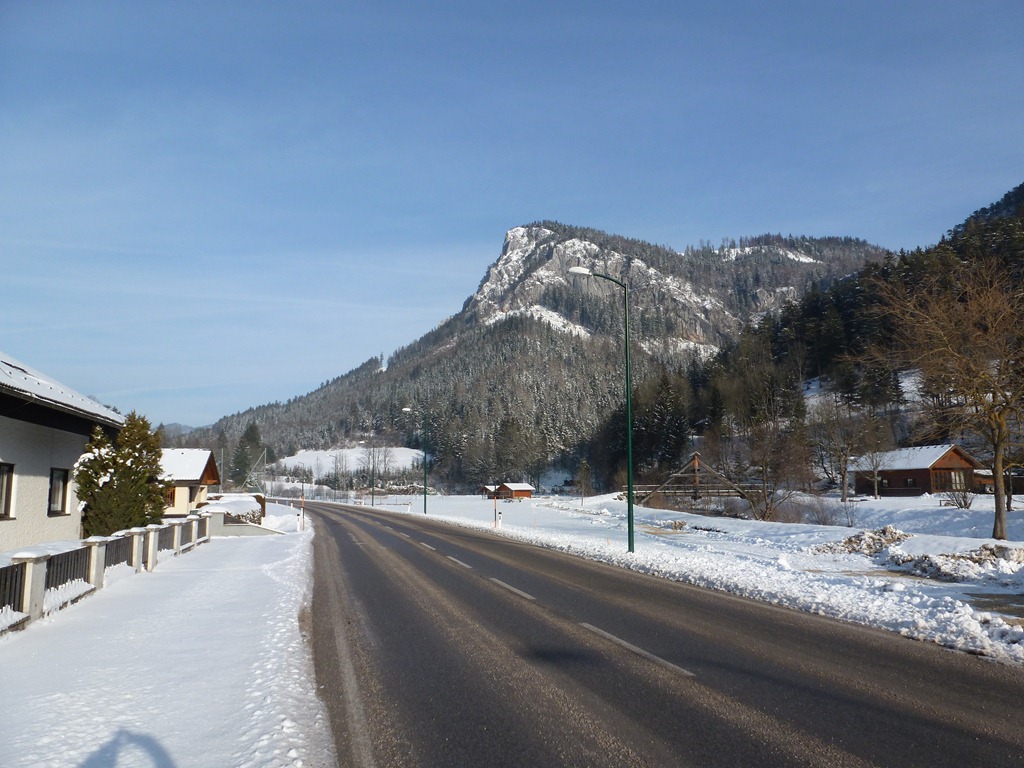 Pernitz környékén aztán hirtelen porcukrozottá válik a táj, majd Gutenstein után szinte átmenet nélkül haladok át a hó birodalma jelenlegi küszöbén. A sötétszürke aszfalt hirtelen eltűnik a jéggé préselt hóréteg alatt. Lassítok, mert bár az út kőtörmelékkel van felszórva, mégis csúszik. A hőmérséklet mínusz hét, majd mínusz tíz fok. Kétségeim elpárolognak a nagy fehérség láttán. Schwarzau im Gebirge főterén, parkolok. Itt a völgyben mínusz négy fokot mutat a hőmérő, ragyog a nap, kék az ég és szellő sem rebben. Ha van szuper optimális, téli barangolásra kifejezetten megtervezett időjárás, akkor ez a mai nap minden bizonnyal érmes helyezést érdemelne.