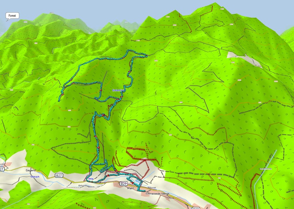 | A táv (Schwarzau im Gebirge-Bichl, Falkenstein, Windhag, Grubenfarnzl, Schwarzau im Gebirge) cirka 9 km, 520 m szintemelkedés és bruttó 5:15 óra |