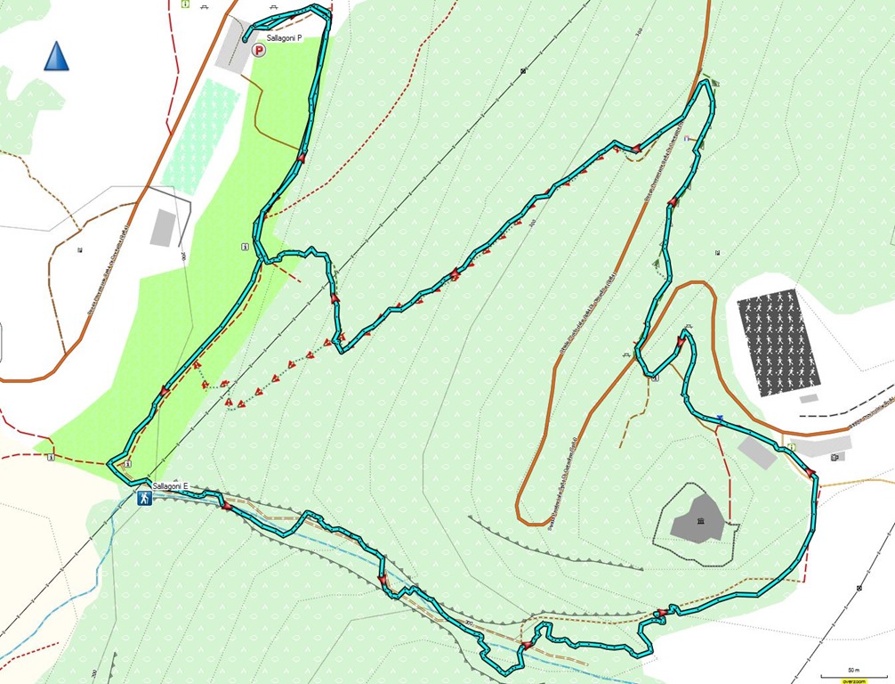 A Sarca patak völgyében, Riva del Gardától északra, a várostól legfeljebb 20 percnyi autóútra csordogál a Sarca felé egy vadromantikus szurdok mélyén a Sallagoni patak. A szurdok részben visszahajló falai adnak otthont egy rövid, de annál élvezetesebb C kategóriás sport Klettersteignek. A Droból Drena felé vezető országút jobb oldalán, közvetlenül egy sportpálya után található parkolóból legfeljebb 10 perc alatt el lehet érni a szurdok bejáratát. Híven a bevált tradíciónkhoz, már hajnali 6:00 órakor elérjük célunkat. Kellemesen dideregtető a hűvösség, mely a szűk hasadékban fogad. A hangosan csobogó patak és a sziklafalak szülte félhomály elvarázsol, egy korábban még valószerűtlennek tűnő világba kísérnek.