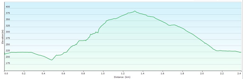 | Nyomvonalam letölthető. A táv cirka 2.5 km, 210m szintemelkedés, bruttó 02:00 óra. |
