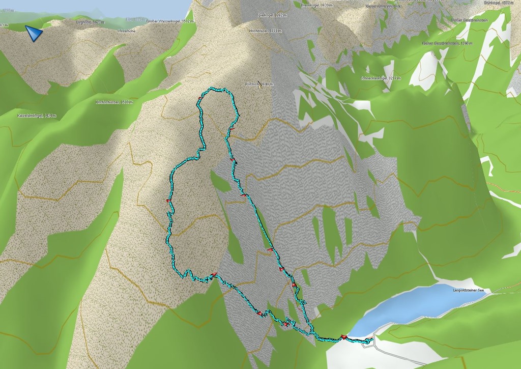 Úgy véltem, a probléma közvetlen kiváltója a kánikula okozta folyadékvesztés és az elektrolit háztartás felborulása volt, de az sem mellékes, hogy ilyen hosszú ideig tartó mászáshoz még valószínűleg nem nőttek fel a karjaim. A Leopoldsteiner tavat megkerülve érkeztem vissza a kiindulópontba. Nem utolsó sorban azért, mert a rövidebb 822-es visszaútról mind a szakirodalomban mind pedig fórumokon rémhírek sora terjeng, tudniillik ami az ösvény kitettségét és meredekségét illeti.