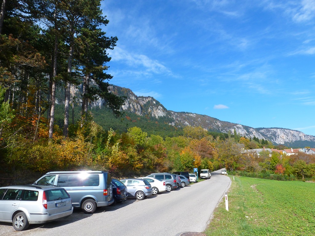 Színpompás őszi Hohe Wand. A színültig megtelt zweiersdorfi parkoló