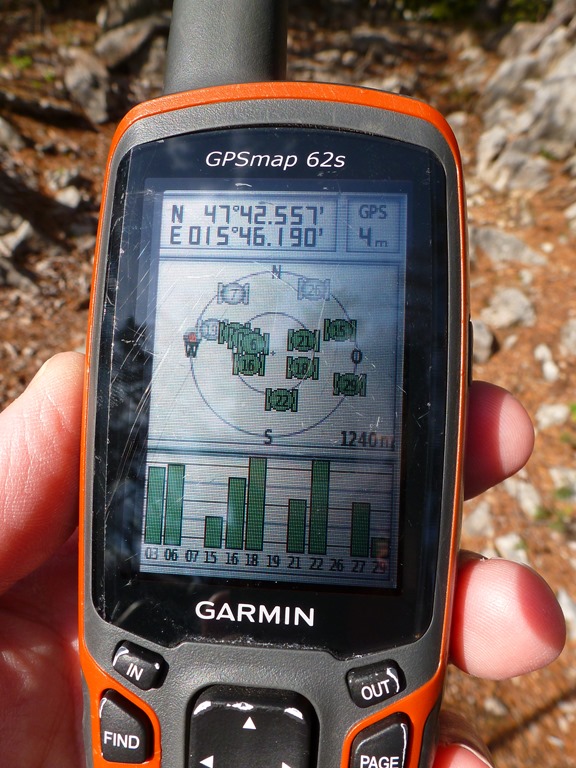 Nem csoda tehát, hogy amikor a fél eget eltakarja egy sziklafal, akkor praktikusan feleződik a műholdakkal felvehető kapcsolatok száma is, mely, ha 4 alá csökken, akkor már teljességgel használhatatlanná válik. Egy mély szurdokban pedig az égre néző rés még akár egyetlen műhold vételét sem teszi lehetővé. Ezen kívül a sziklafalakról fogott visszaverődések még egy lapáttal rátehetnek a torzításra. Hasonló helyzet áll elő északra meredeken lejtő turistautakon, is (pl. Großes Höllental, Raxalpe, ahol a GPS helyenként teljességgel megkergül, lásd a fenti illusztrációt). A műholdak többsége tehát déli irányba tekintve fogható be a legjobban.