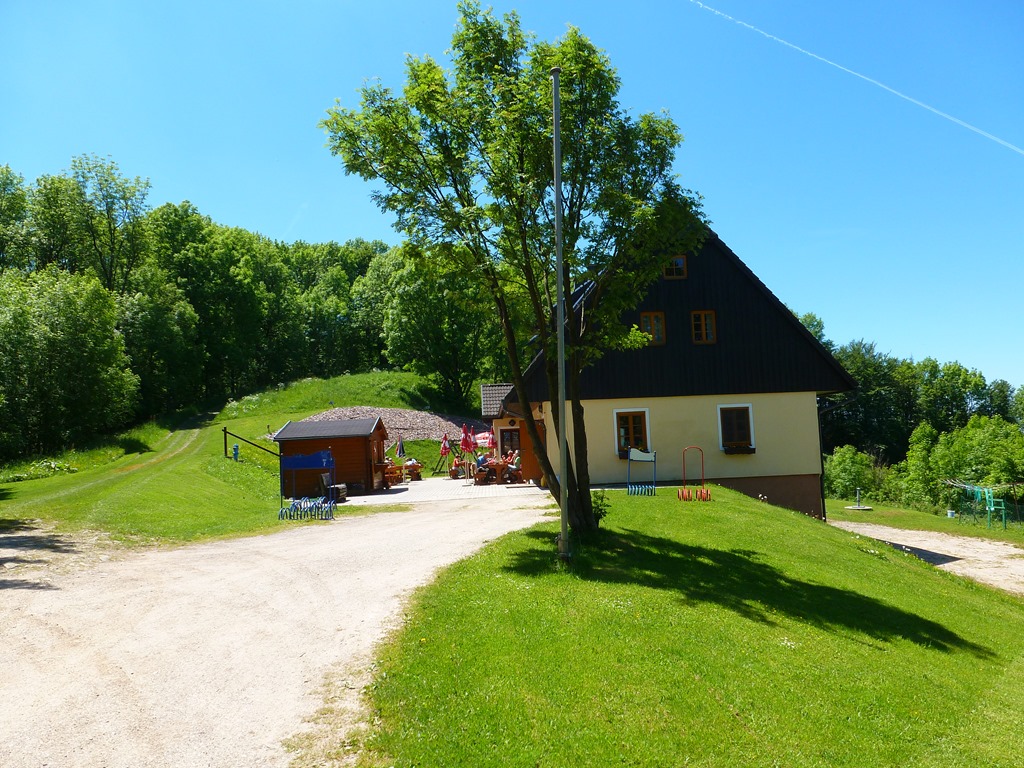 Tolás következik, de lesem, hol van felnyergelésre alkalmas hely. Találok is egy ilyet, és újra nekiveselkedem. Örömöm nem tart sokáig, mert másodszorra is ledob a paripám, de ez egyáltalán nem veszi el a kedvemet. Tolom pár métert a biciklit a kaptatón, majd újra nyergelek és ezúttal szikrákat okádva bár (maximális pulzus), de elérem a Schöpfl alatti turistaházat. Itt a szép napos teraszon asztalhoz ülök és “szenvedéseimért” cserébe egy korsó elektrolittal ajándékozom meg magam.