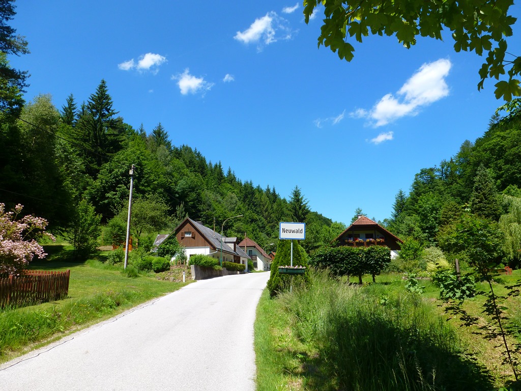 A folytatás a bevezetőhöz hasonló kihívások nélkül, szinte már-már eseménytelenül, egyszerűen élvezetes le és fölfele tartó bringázással telik. A Schöpfl gerince alatti hűvös erdei út a Stützenreitbach patak völgyében folytatódik, mely zabolátlan vágtázásra ösztökél, majd kiér egy szerencsére csak gyér forgalmú aszfaltútra. Neuwald és St. Coronán át a kaptatás jön majd St. Coron után egy jobbra mutató tábla ismét az erdőbe invitál. A csendes erdei úton még búcsúzóul minden érzékemmel ráhangolódom a környezetemre, majd hirtelen kiérek a Schöpflgitterbe visszavezető nyílegyenes aszfaltútra. Remek kerülő, élvezetes vonalvezetés a javából!