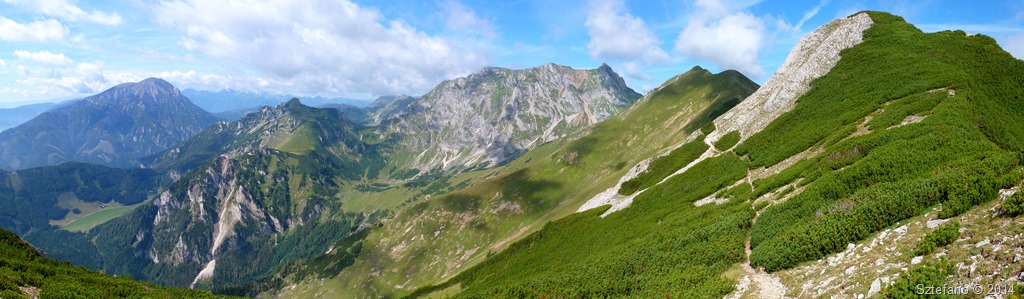 11:00 órára elérjük a Vordenberger Zinken szelídebb füves gerincét. Itt elcsomagoljuk a már feleslegessé vált ferrata felszerelést és jó tempóban veselkedünk neki a soron következő szakasznak, mely a Rottörl útkereszteződésben ér véget.