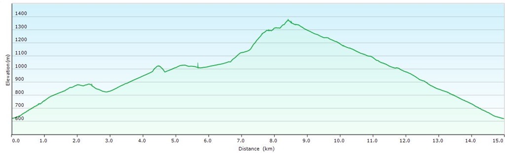 Amikor háromnegyed kilenckor elindulunk és bakanyarodunk a Gasthaus Gruber mögé, csak két-három fokot mutat még a hőmérő. Ennek megfelelően vagyunk beöltözve, de a kezdeti kaptatók szoros egymásutánjának köszönhetően, gyorsan üzemi hőmérsékletre melegszünk és kiérve az ösvény napsütötte szakaszára gyorsan megválunk a feleslegessé vált ruháinktól. Első célunkra a Falkensteinre mérsékelten emelkedő, széles erdei úton kaptatunk felfelé. Csak az utolsó felszökés rendhagyó és meredekségével kitáncol a sorból úgy, mint majd a Handlesberg csúcsára vezető végső kaptatók sorozata is.