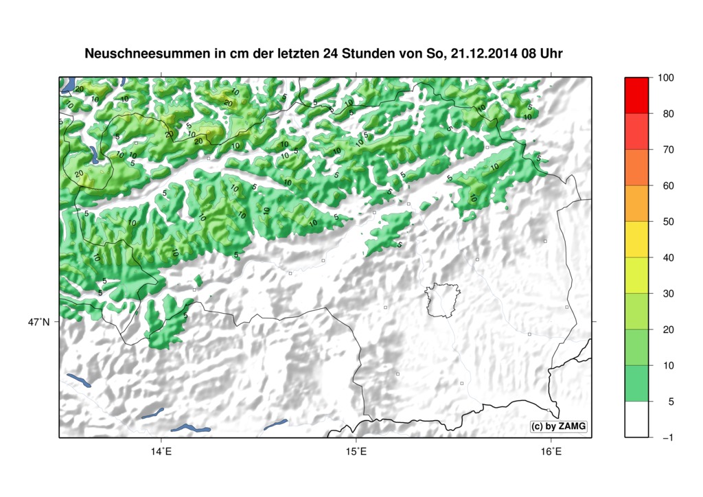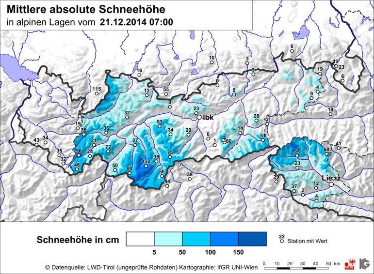 Az elmúlt 24 óra hótermése (Karintia sajnos semmit sem kapott). Lejjebb Tirol jelenlegi hótakarójának a vastagsága (szerény). Információ forrása a http://lawine.at .