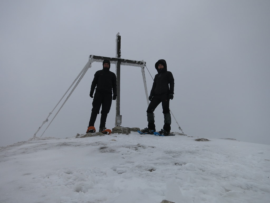 A Solleneck felett aztán úgy szakad ránk a tél, mint egy nem várt atyai pofon. Először még durcáskodunk egy sort és azért sem váltunk hótalpakra. Hátha csak lokális jelenségről van szó. A Weißenbachalm tövében, ahol éles jobbraáttal elhagyjuk a rendesen jelzett turistautat, aztán el is dől a kérdés. Itt még tél van a javából! Az ábra egyértelmű. A sítúrázók által is használt útvonalat követjük északnyugati irányban, majd a Hochstaff gerincén nyugatnak fordulunk. Erre még én sem jártam. Meglep a téli táj harmonikus gyönyörűsége.