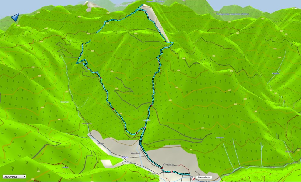 | A táv (Hinternaßwald, Franz-Jonas Steig, Großer Sonnleitstein, Amai-Wieß Hütte, Hinternaßwald) 10.4 km, 920 m szintemelkedés és bruttó cirka 4:20 óra |