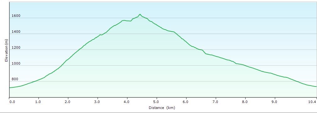 Még nincs hét óra, amikor nekilendülök. Az ugyancsak meredek Franz-Jonas Steigen kaptatok a csúcs felé. Egy a völgyben elhelyezett tábla 3 és 1/4 órányi úttal riogat. Miután van már némi tapasztalatom a hinternaßwaldi útjelzőkkel, ezt nem veszem túl komolyan. Ennyi idő alatt oda-vissza teszem meg a távot (gondolom). A becslésem nem is olyan rossz, mert 1:55 alatt érek fel a kicsiny fakereszttel ellátott csúcsra. Igaz nem kímélem magam, bár egyórányi járás után beiktatok egy hosszabbacska pihenőt. Kicsavarom a verejtékkel megtelt homlokpántomat, beveszem az ilyenkor szükséges só tablettámat és iszom, bőven.