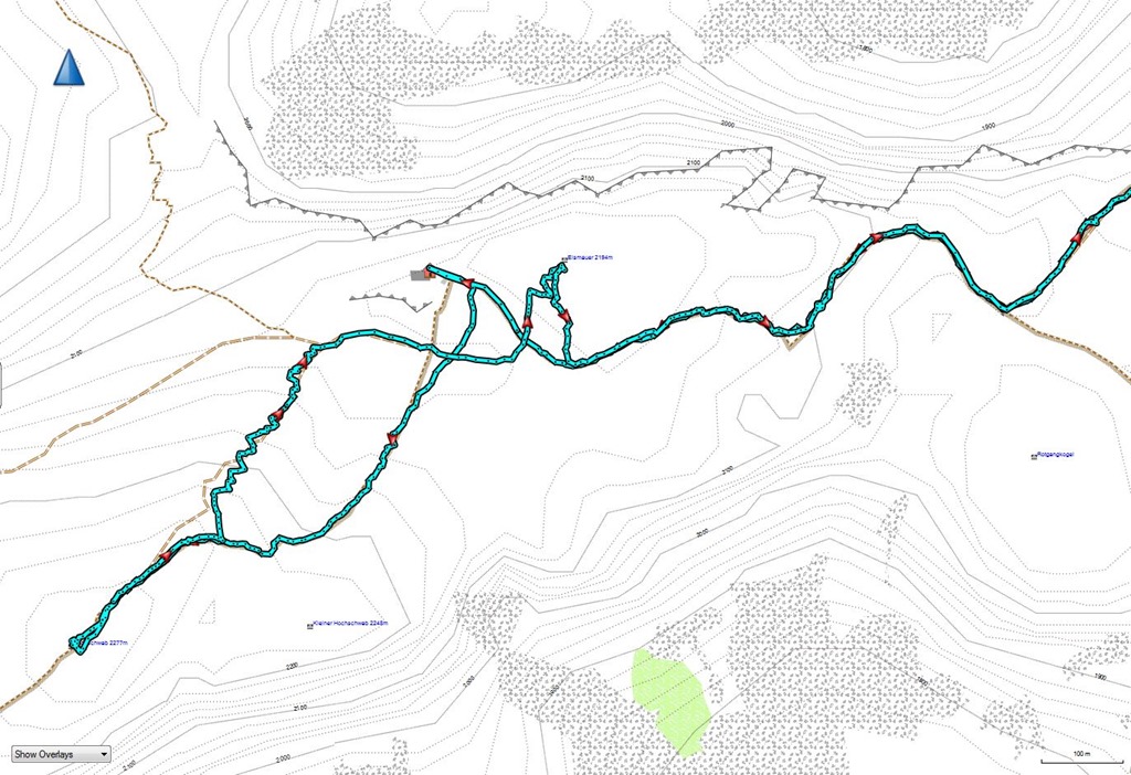 Az Edelbodenalm egy hatalmas kiterjedésű, elhagyott alpesi legelő. Csak találgatni lehet, miért maradtak el a kolompoló tehenek, miért nincs gazda, miért pusztulnak magukban a faépületek. A legelőről jól belátható utunk törpefenyők között kacskaringózó következő szakasza, mely már a Hochschwab platójára visz.