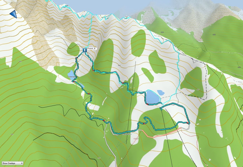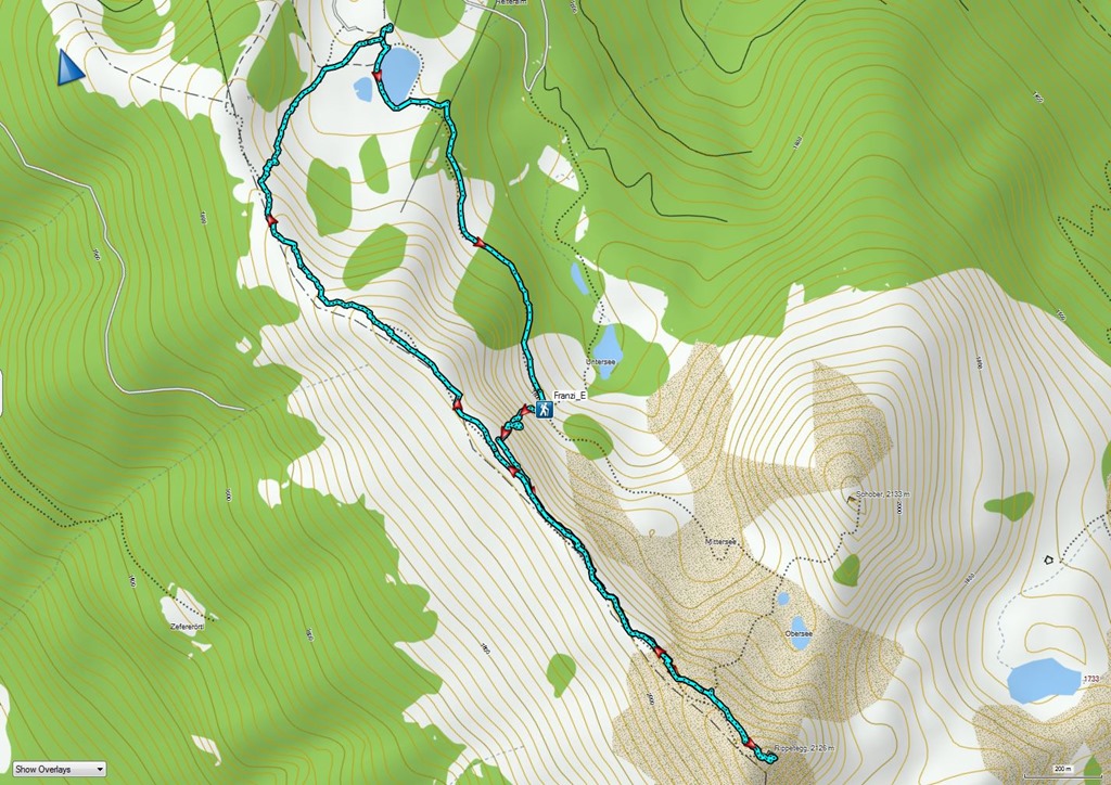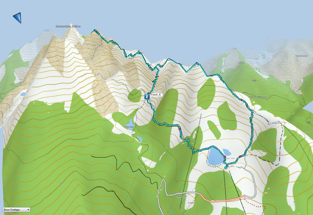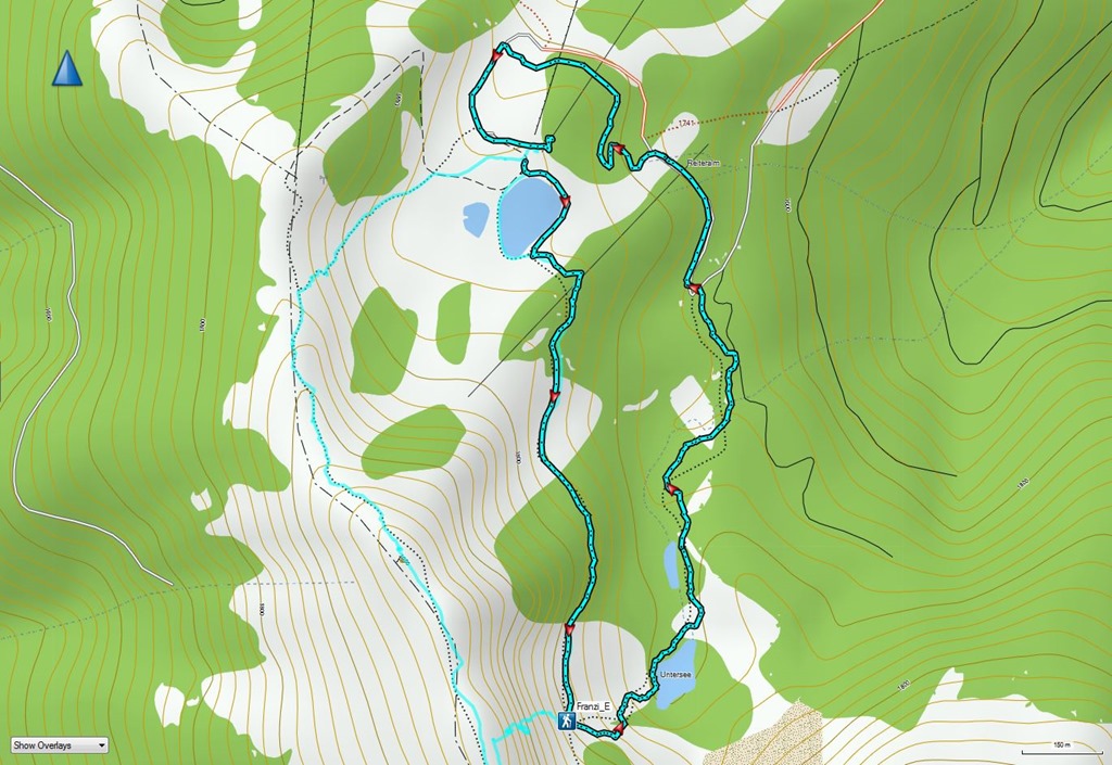 | A táv (Reiteralm, Untersee, Reiteralm) 4 km, 170 m szintemelkedés, bruttó 1:30 óra |