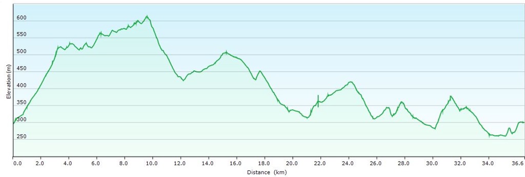 A hegy gerincén hullámvasutas stílusban még növeljük a magassági szintet, majd a Parapluie nyugati végében hosszan tartó lejtők sorozatába torkollunk, melyet aztán még kisebb-nagyobb emelkedők, de lineárisan csökkenő magasságú láncolata tarkít az út végéig (lásd a profilt).