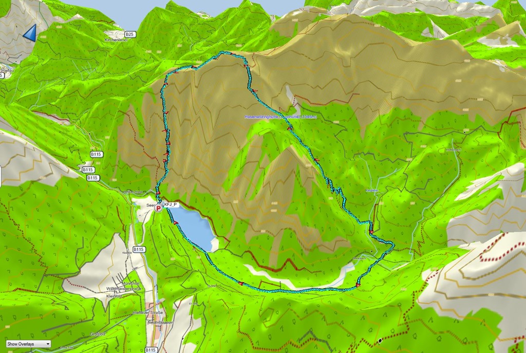| A táv (Seestüberl, Kaiser Franz Joseph Klettersteig, Hochblaser, Hasenwilzinghütte, Seeau, Seeboden, Seestüberl) cirka 13 km, 1170 m szintemelkedés és bruttó 9:00 óra |