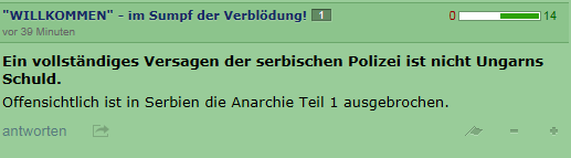 A hivatalos osztrák állami baloldali propaganda ellenére, a lakósok jelentős hányada megértéssel viseltetik a magyar intézkedésekkel szemben. A Der Standard hozzászólói többek között megjegyzik: “Orbánt és a magyarokat egészen más fából faragták. A magyarok az oroszoknak sem hódoltak be és nem fognak térdre esni Brüsszel sem pedig a nyugat nyomására” a másik arra kér, hogy “segítsetek megérteni, hogy milyen jogon próbál egy idegen állampolgár akár erőszakkal is behatolni egy más ország területére?” illetve a harmadik azt mondja, hogy “A szerb rendőrség teljes csődjét nem lehet Magyarországnak felróni ”.