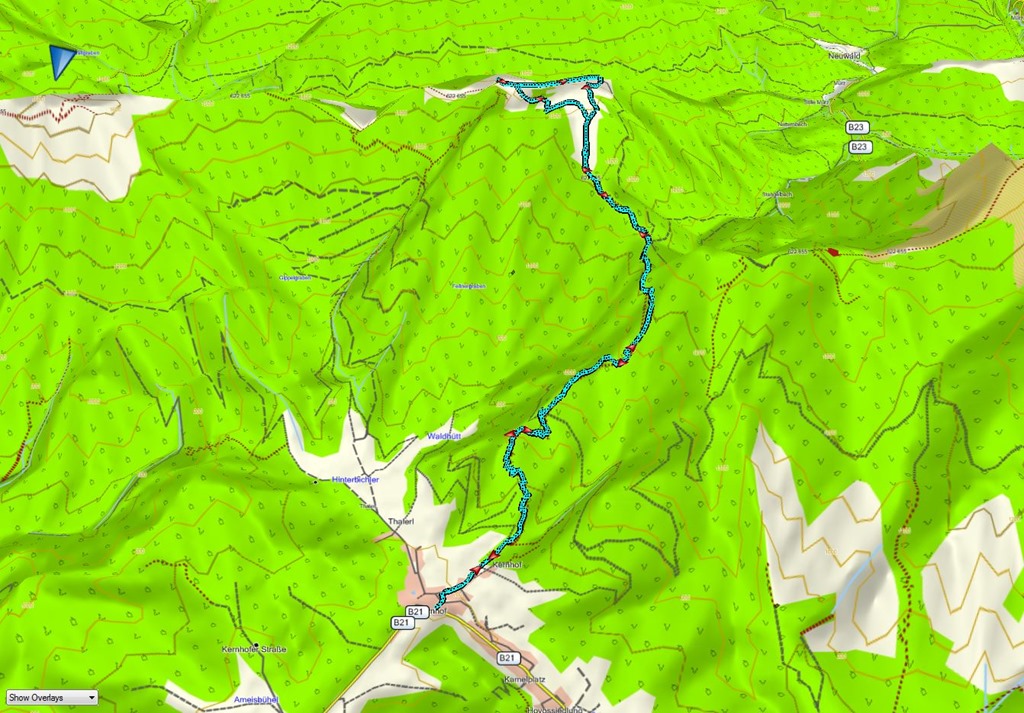 | A táv (Kernhof, Waldhüttsattel, Schnalzstein, Gamsmauer, Hofalm, Waldhüttstattel, Kernhof, ) 11.7 km, 980 m szintemelkedés bruttó 5:00 óra |