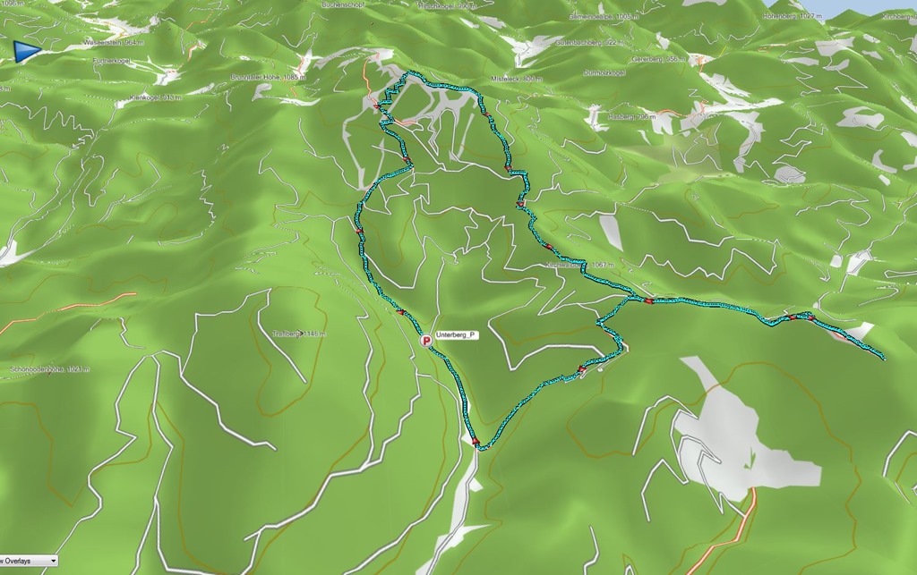 Az Unterberg menedékházat papírforma szerint 1:30 óra alatt érjük el. Innen még cirka 20-25 perc a csúcs. A végső kaptató bizony a legjobbakat is verejtékre fakasztja. Lefelé követjük az Unterberg keleti gerincét majd az erdőbe érve, fakó sárga foltokkal jelzett ösvényen haladunk tovább mindaddig, amíg el nem érjük a hivatalosan is kijelölt turistautat.