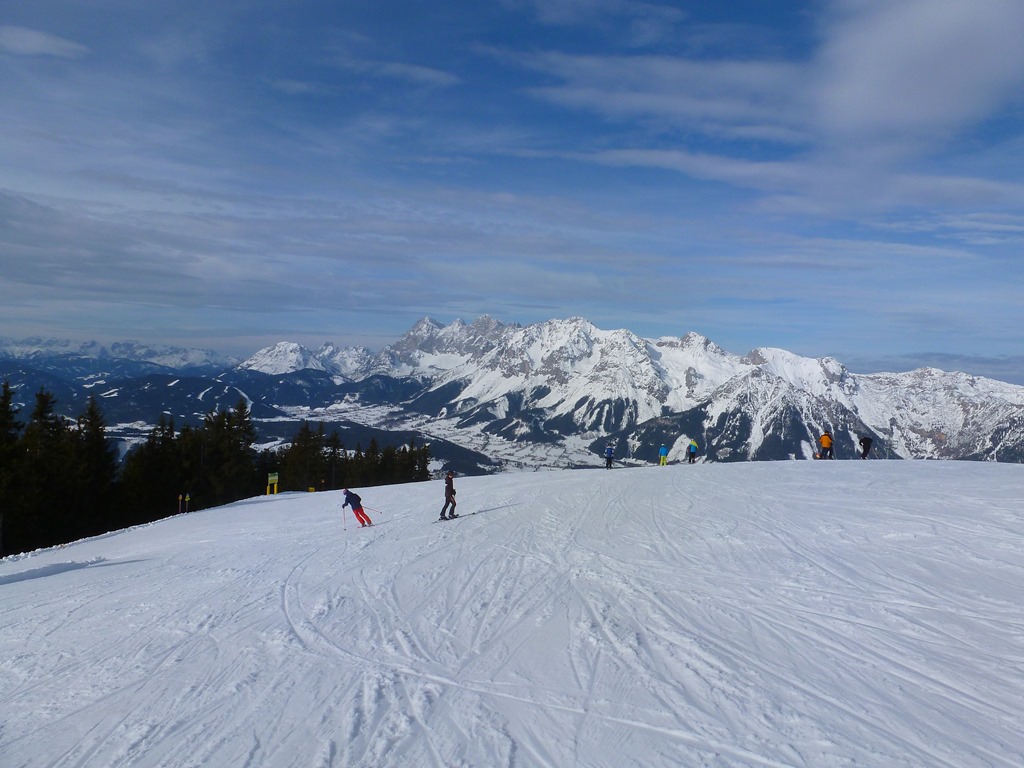Pillantás a Hochwurzen köztiállamásáról: a napok óta tartó erőteljes olvadás ellenére Schladming és környéke még mindíg télies, fehérbe öltözött.
