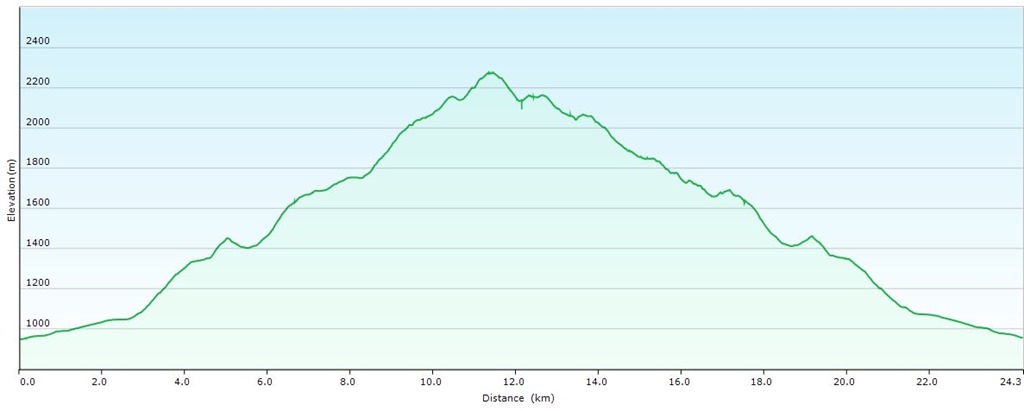 Van már 12:00, amikor elindulunk visszafelé. A változatosság kedvéért az árnyékos Ochsenreichkaron és a nap melegétől izzó, fülledt, Kühreichkaron át vezető utat választjuk. Utóbbiban nyáron jól megszorul a hőség, így kánikulában nem biztos, hogy kellemes (ezt nem tudtuk). Összességében ez a kerülő majdnem kétszer olyan hosszú mint az egyenes út a csúcsra a Graf Meran-Steigen át.