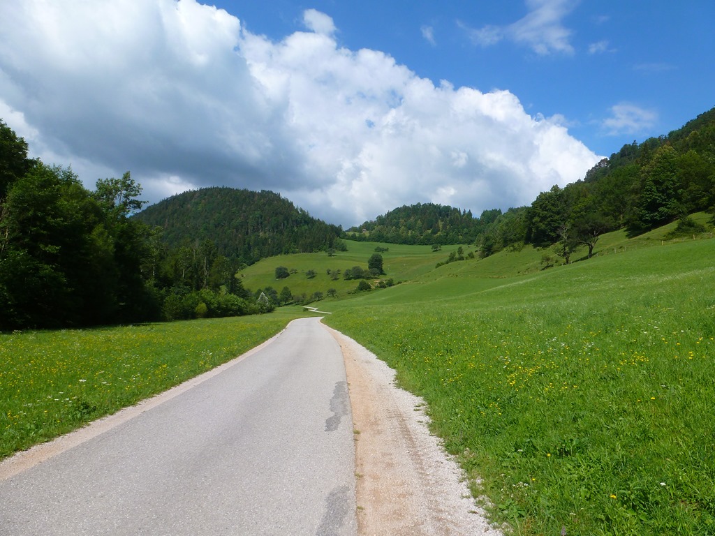 Később szelídül az emelkedő és egy tisztavizű patakon áthajtva máris a Mamuwiesen találom magam. A vendégház az idén nem nyitott ki, az okát nem tudom (pedig meg is jegyzetem, micsoda remek almás rétessel szolgáltak itt annak idején). Így csak egy padon elmajszolok egy kis csokit, mielőtt átemelném a bringám a legelő kerítésén. Azt hittem vége a nehezének, de tévedek.