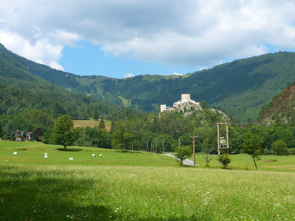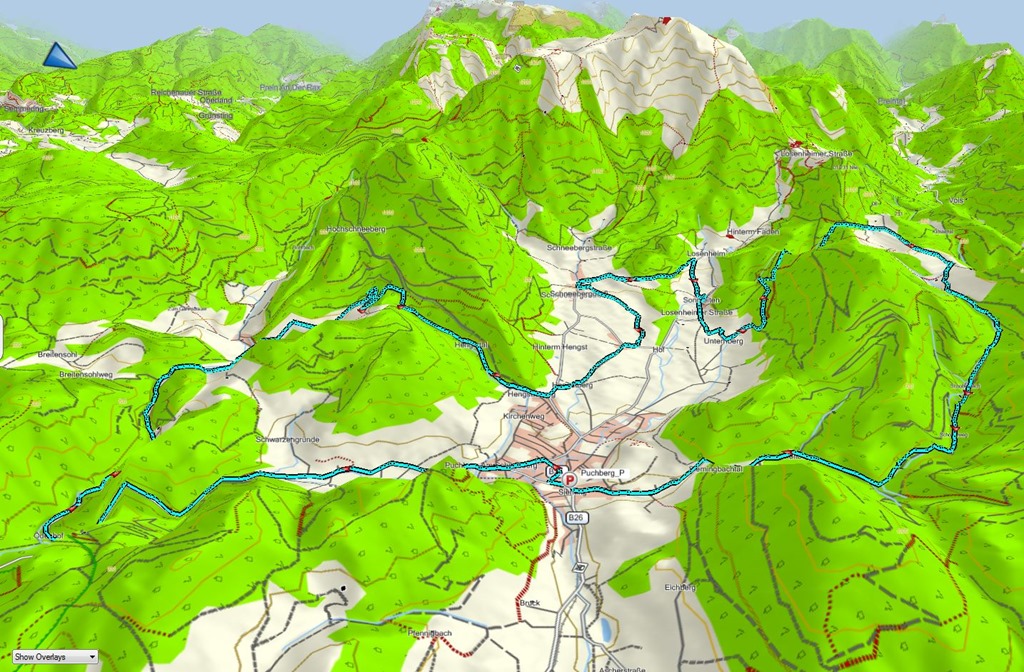 Mindezek ellenére nem szabad lebecsülni a profil három taréjból összeálló szakaszait (lásd a képen). Puchbergből indulok déli irányba az aszfaltozott országúton. Lejt a terep, így gyorsan elérem a Rohrbachgraben felé vezető elágazást. Egy szoroson át visz az út, egyelőre továbbra is aszfalton, de immár felfelé.