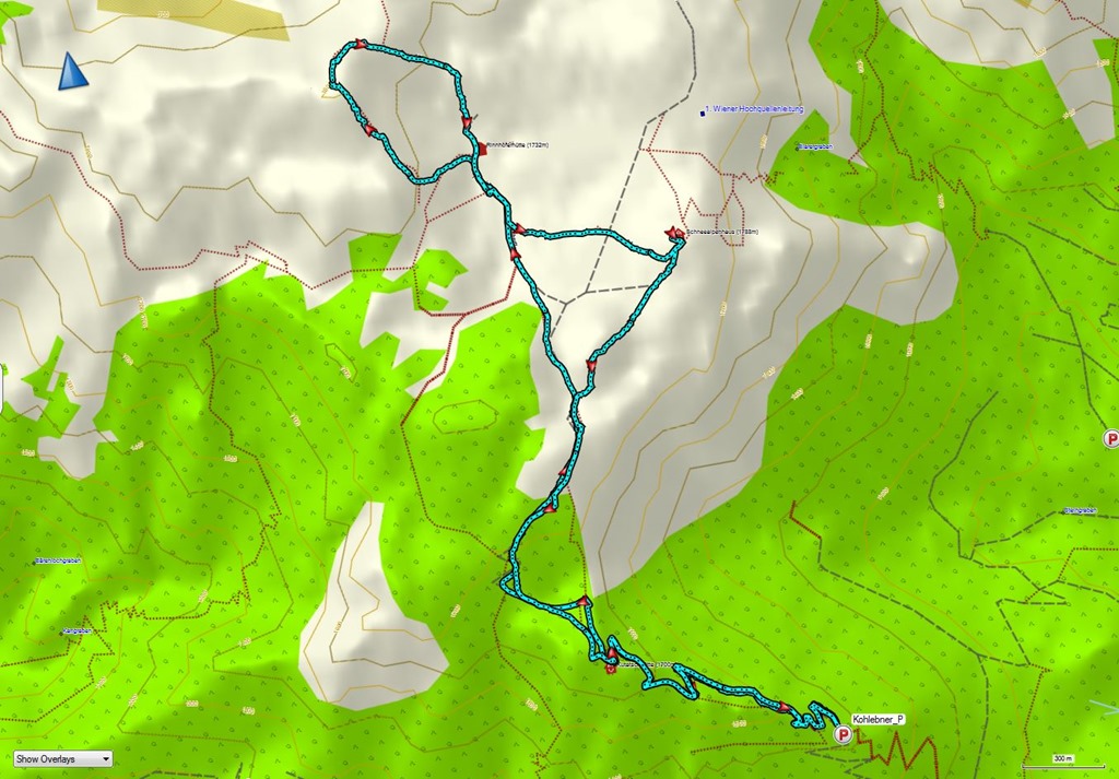 Michlbauer kínáltatja magát, megejtjük hát nála az esedékes déli pihenőt majd 13:10-kor felkerekedünk a Schneealpenhaus felé. Ott is van egy csúcskereszt, lévén a menedékházzal egyetemben a plató egyik jellegzetes magaslatán. 13:30-kor el is érjük aznapi utolsó célunkat. Némi üldögélés után elindulunk vissza a parkolóba, ahová 15:20-kor (azaz 1:40 alatt) érkezünk.