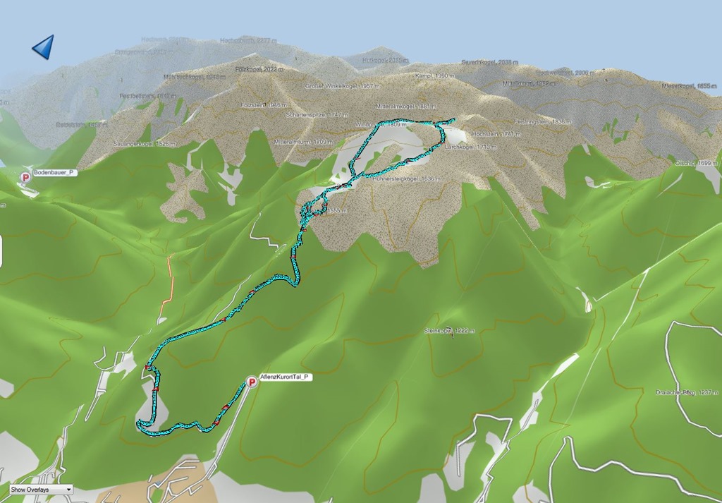 | A táv (Aflenz Kurort, Pierergut, Klettersteig, Ranstein 1555m, Bürgeralm, Windgrube 1809m, Bürgerlam, Pierergut, Aflenz Kurort) 16 km, 1100 m szintemelkedés és 6:50 óra bruttó alatt |