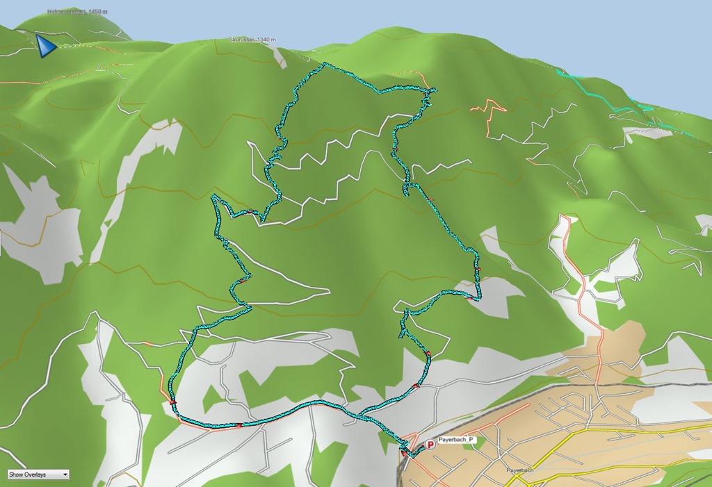Nem időzöm sokáig, indulok lefelé. Útba ejtem még a kilátót (11:40) a Geyersteinen (Jubiläumsaussicht). Utána folytatom, egyre tikkadtabban, az ereszkedést. A nap szilaj hevétől hajtva az erdő madarai is mintha már a tavaszt köszöntenék.
