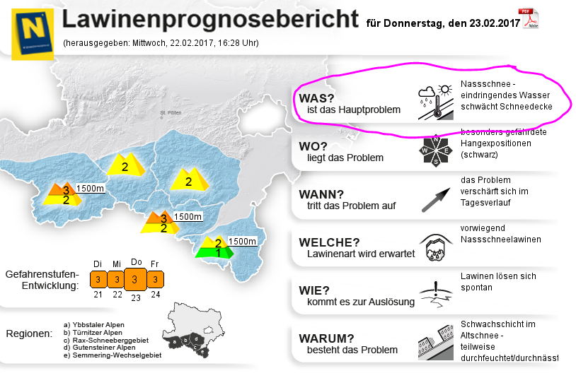 de mérföldes tempóban. Teljesen bevörösödött a korábban a zöld és a kék árnyalataiba burkolódzott hőmérséklet térkép. A hegyekben nedves-hó lavinák spontán kioldódása fokozottan valószínű. Az erdőhatár felett hármas az aktuális veszélyfokozat. Az alacsonyabban fekvő síterepek barnulgatnak. Hó még van, de helyenként már tocsogó vízben síelnek. Miattam ugyan jöhet a tavasz.