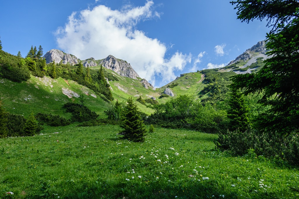 Két órás menetelés után érkezem a Karlgraben végébe és gyakorlatilag a Schneealpe platóján vagyok. Naposabb időre számítottam, bár a felhők árnyékolta égboltnak is megvannak a maga előnyei. Zivatarral, szerencsére, nem kell számolnom.
