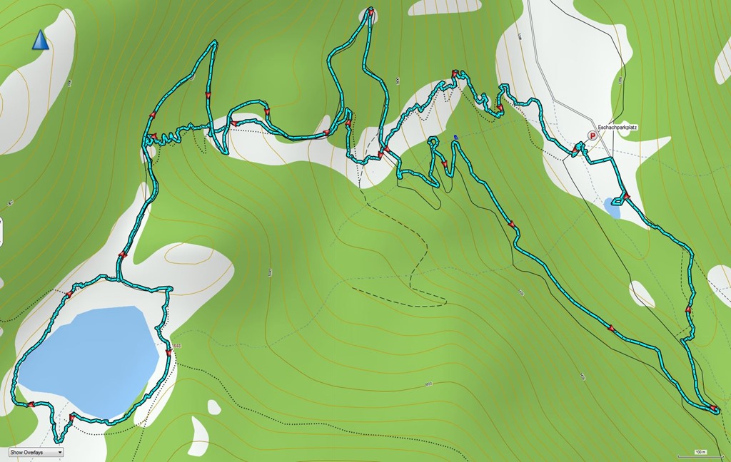 A Duistzkarsee egy hegyek közé szorult gleccsertó, a hasonnevű gleccser formálta katlan közepén (Kar). A tóba ömlő patakok túlcsorduló vizét egy hangosan robajló vízesés vezeti le. A zuhatag mentén az Eschachalmról visz a kifejezetten meredek turistaút fel a Karba, 1648 méteres magasságba.