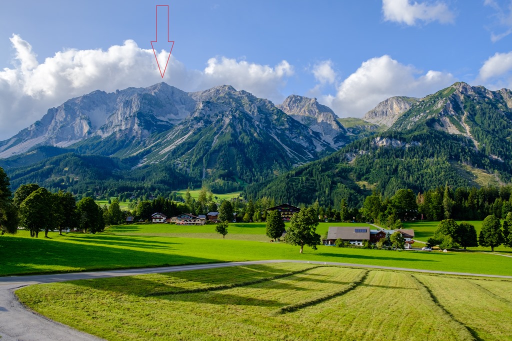 Aki életében először érkezik Ramsauba vagy Schladmingba és felpillant a Dachsteinre, a tekintete valószínűleg a Scheichenspitzen illetve a lentről is jól látható csúcskeresztjén akad meg. Esetenként akár a Hoher Dachsteinnek nézik. Ez azért van így, mert a sűrűn lakott lenti területekről nem látszódik a Dachstein tulajdonképpeni legmagasabb triója a Hoher Dachstein, a Mitterspitz és a Torstein.