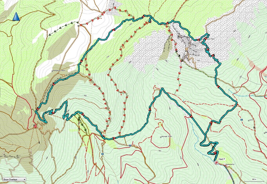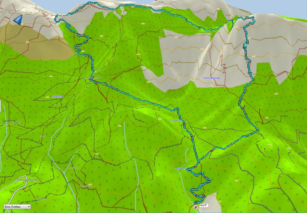 Griesletenből indulunk (9:10) a legpompásabb őszi napsütésben, tudniillik onnan, ahonnan a Hans Haidsteiget is ostromolják. Az út első fele is azonos és csak a Bachinger Bründl (forrás) előtt válik el jobbra fel a Preinerwandsteig felé vezető ösvény. A kereszteződésbe érve (10:00) látjuk, hogy a Haidsteig leágazása erdészeti munkálatok miatt le van zárva. Aki oda tart, ne ijedjen meg, mert egy terelőúton át (nyilak szerint) a Haidsteig továbbra is megközelíthető.