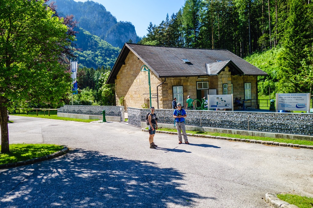 Az útvonal hivatalosan bár nem jelölt, de több térképen is be van rajzolva (pl. “bergfex OSM”, openmtbmap, etc.). Kaiserbrunnból indulunk 9:10-kor. Elhaladunk a Bécsi Vízvezeték Múzeum mellett majd egy hármas útelágazás előtt találjuk magunkat. Jobbra fel a hivatalosan is kijelölt turistaút, a Miesleitensteig visz, egyenesen és balra pedig egy-egy kapu zárja el a haladás irányát. Mi egyenes továbbmegyünk. A kapu mellett jobbra a kerítésben legalább egy évtizede megtűrt lyuk tátong. Ezen át lehet kelni a lezárt területre.