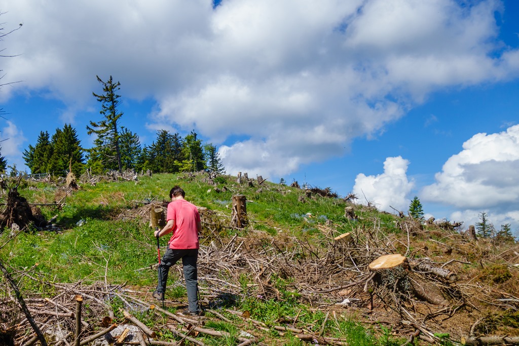 10:20-kor már el is érjük a jól kitaposott turistautat, mely a Bettelmannkreuz irányából érkezik és az Unterbeg-Schutzhaust célozza meg. Mivel mi először a csúcson szeretnénk tiszteletünket tenni, hamarosan elhagyjuk a jelzett utat és maradunk a gerincen. A sítúrázók kedvelt “téli” kaptatóján érkezünk a szépen zöldellő síterepre (11:15).