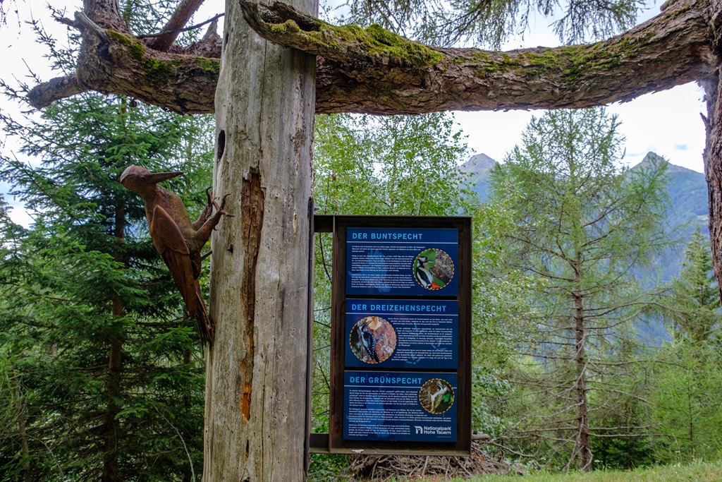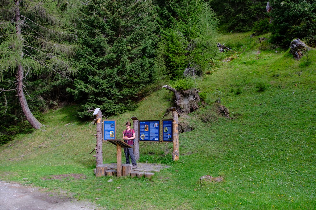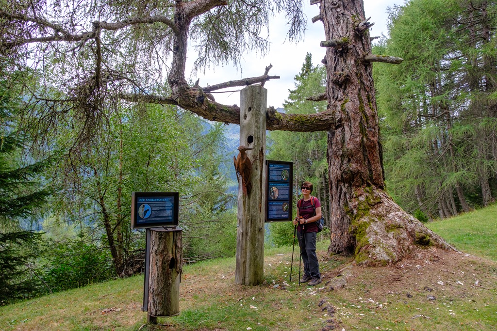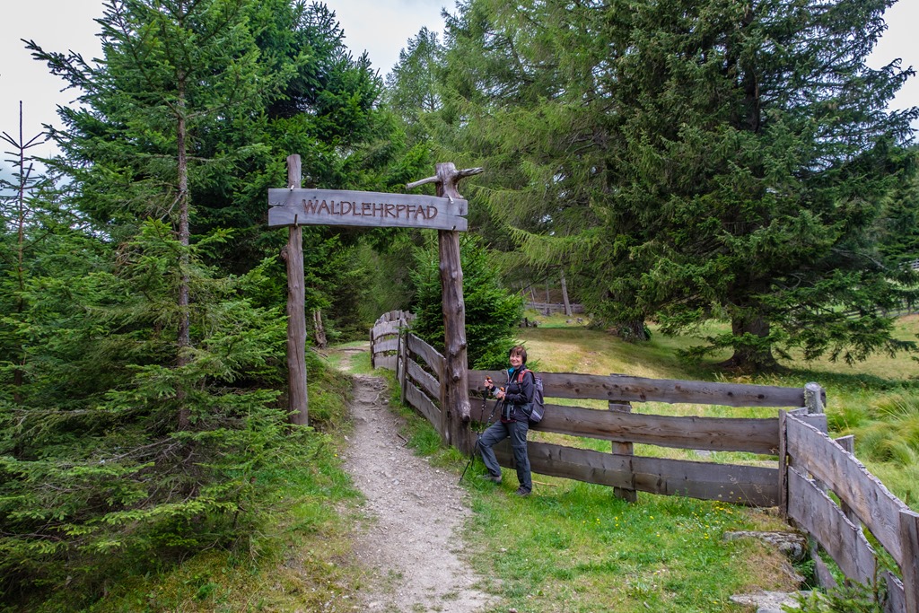 A tanösvény it kezdödik: cirbolyafenyő, vöröfenyő, lucfenyő, stb…