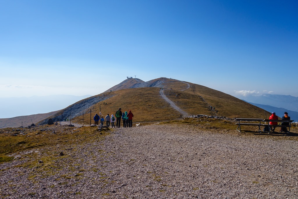 Déli 12:00-kor már a Fischerhütteben sorakozom a pult előtt hosszúra dagadt sorban. Aznap túlcsordulás van minden szinten. A szép őszi nap nagy csapatokba verődött cepreket csalogat a hegyre. A teraszon hideg áramlatok fuvoláznak, így mindenki igyekszik a fűtött beltérbe tódulni. A kiszolgálás tempójában most sem kell csalódnom. Rutinos mozdulatokkal darálják le a sort. Néhány perc elteltével már asztalhoz ülhetek.