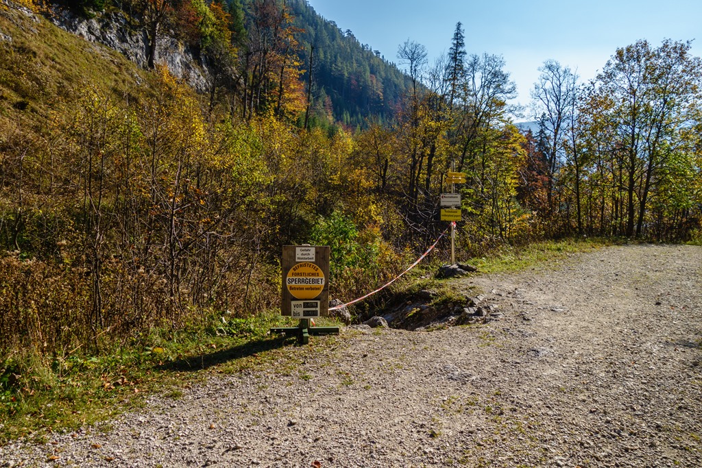 14:30-kor haladok el a Weichtalkalmm végét lezáró tiltás mellett és megkezdem utam legunalmasabb szakaszát. A Ferdinand Mayr-Weg mindig is az. Ez persze inkább csak egy hosszú túra utáni fáradtság miatt van így, mert elvileg egy nagyon szép út. Különösen így ősszel. Cirka másfél óra az ereszkedés időtartama a Weichtalhaus tövéig.