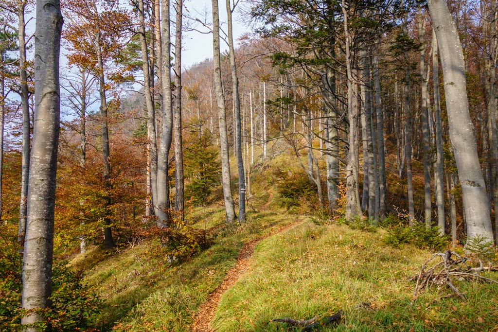 11:20-kor kerekedem fel, hogy a klasszikus Enziansteigen cammogjak le a völgybe. Igen, cammogást írok, mert szépen, lassan, komótosan akarok elbúcsúzni a hosszantartó ősztől. A hangulatom követi a csendes elmúlást hirdető idő szomorkás mintázatát. Okkal, sajnos.