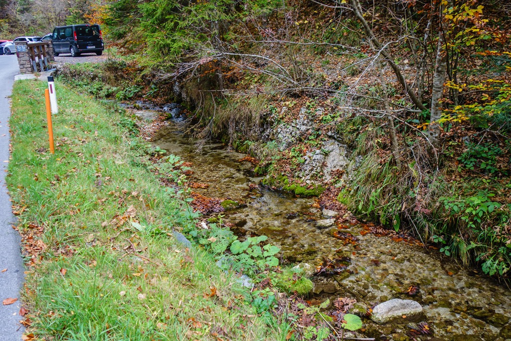 Még így a végén megjegyzem, hogy meglep a Thalban összeérő két patak, a Myrabach (lenti kép) és az Atzbach vízbősége. Pedig már hetek óta nem esett, és az ősz a szárazságról szól. A Duna alacsony vízszintje rekordokat döntöget, gyakorlatilag hajózhatatlan. Itt meg, sem olvadó gleccserek nem táplálják, sem magas hegyek nincsenek, mégis csörgedeznek ezek a tiszta vizű patakok. Honnan jön a víz? Csoda.
