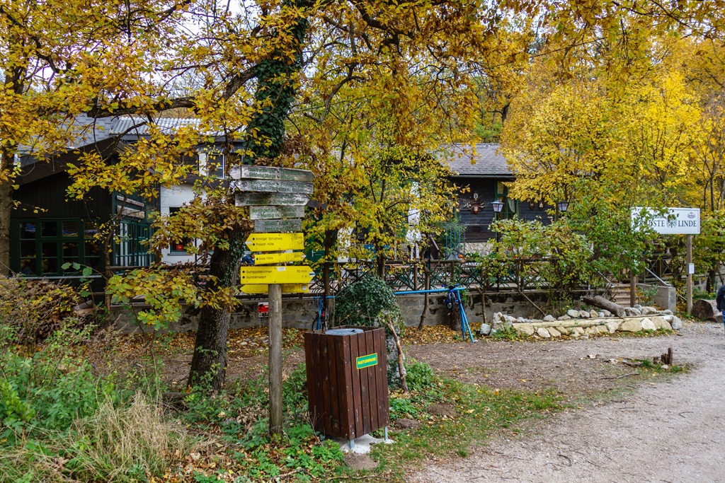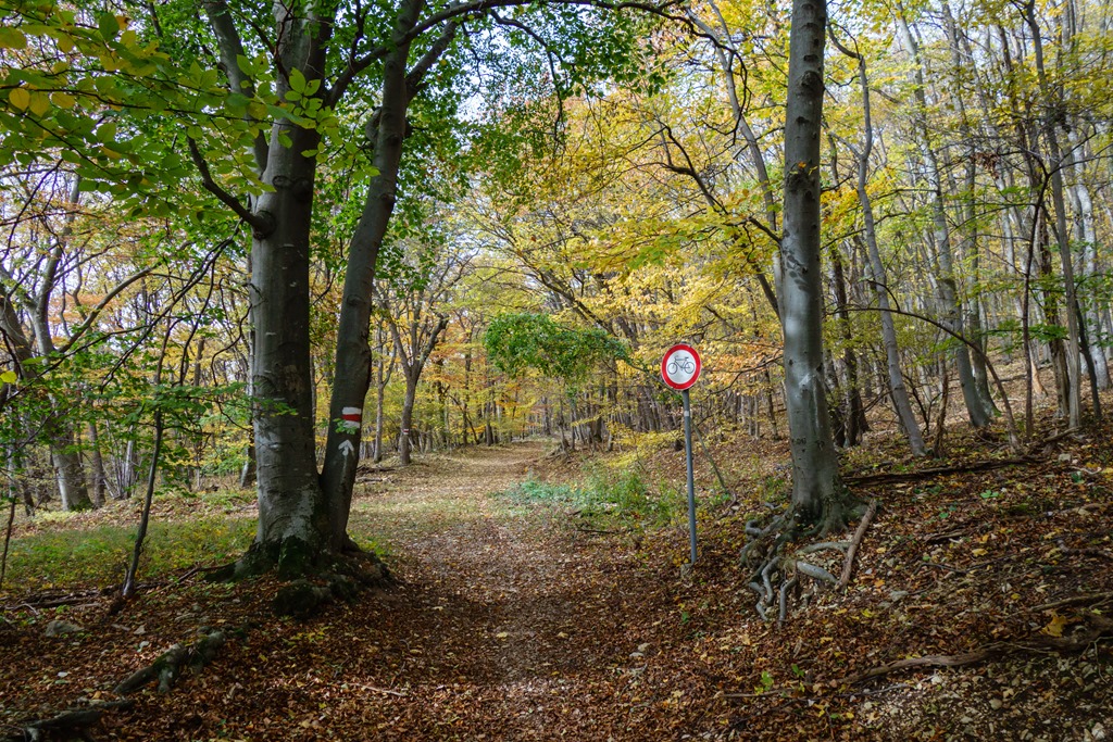 A gyengélkedő derekamra és a felsőbb régiókban várható erős déli szélre való tekintettel csak egy „kék” túrára indulnánk az Anningerre. Különféle kisokos portálok borús jóslatai miatt aztán Angika inkább mégsem jön. Kár, mert mint később kiderül, az előrejelzések köszönő viszonyban sincsenek a valósággal (már megszokhattuk, de most érzelmileg feldúl, hogy az időjósok hibája miatt megint csak egyedül baktathatok). Az erdővel borított szelíd hegyhátakon többnyire szélcsend honol. Kifejezetten kellemes őszi túraidőbe botlom, csak hébe-hóba lendül friss fuvallat, ám az sem zavaró.