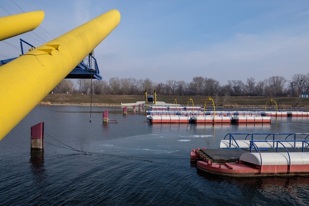 A pontonokból álló Walolisobrücke, amit csak nyáron helyeznek üzembe