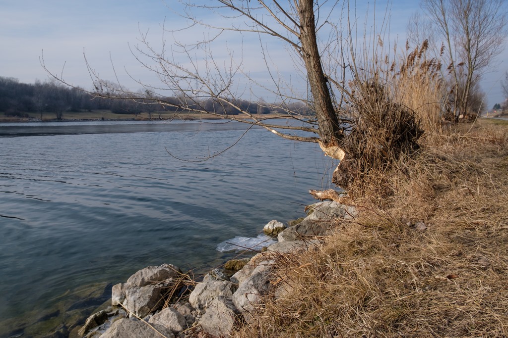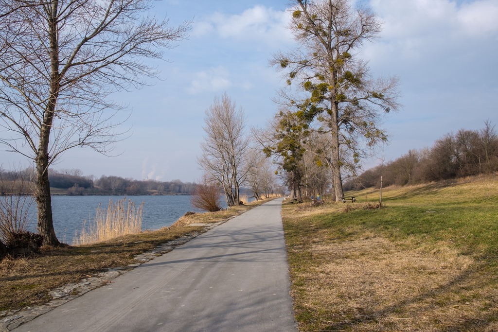 Freudenautól számítva háromnegyed óra elteltével érkezem a hídon át a Jamaika Beachre. Így télvíz idején elég elhagyatott. Északnyugatnak tartok továbbra is szigorúan a Duna mentén. Félórás séta után elérem a Lobau kapuját. Átkelek az országúton és megkezdem a tulajdonképpeni sétát az ártéri erdőben.