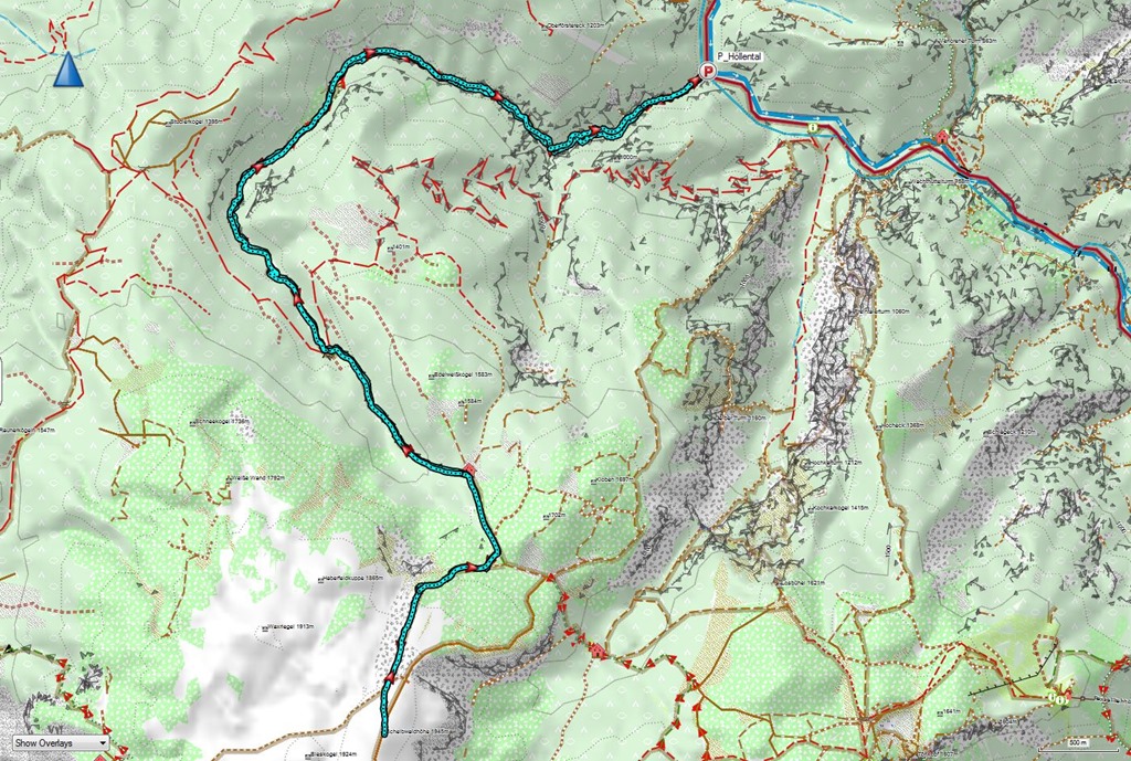Utam megtervezésekor természetesen figyelembe veszem a meredek hegyoldalak okozta kockázatot. A térképem szerint sehol sem keresztezek majd a kritikus 30 fok dőlésszög feletti lejtőt. A Kesselgraben két meredek oldala a tulajdonképpeni kockázat, de úgy gondolom, hogy miután hó már csak 1400 méter felett van, itt ez most nem okozhat gondot. Na, de a valóság kicsit másként fest.