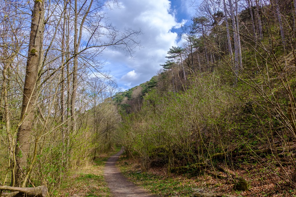 Cirka 40 perces ebédszünetem után (12:18), következik túrám „tavaszi rácsodálkozás” elnevezésű, laza része. Nem sietek. Ebben támogat a napocska ereje, mert felfelé még ugyancsak gyakran bújt felhő paplanjai mögé. Most viszont kellemesen, langymeleget árasztva marasztalgatna, de nekem azért lassan-lassan azért mégiscsak ereszkednem kell, lefelé a szép Helenentalba.
