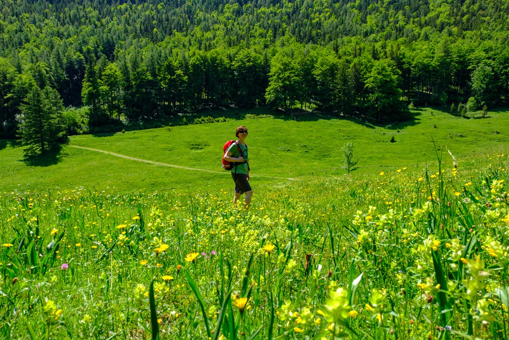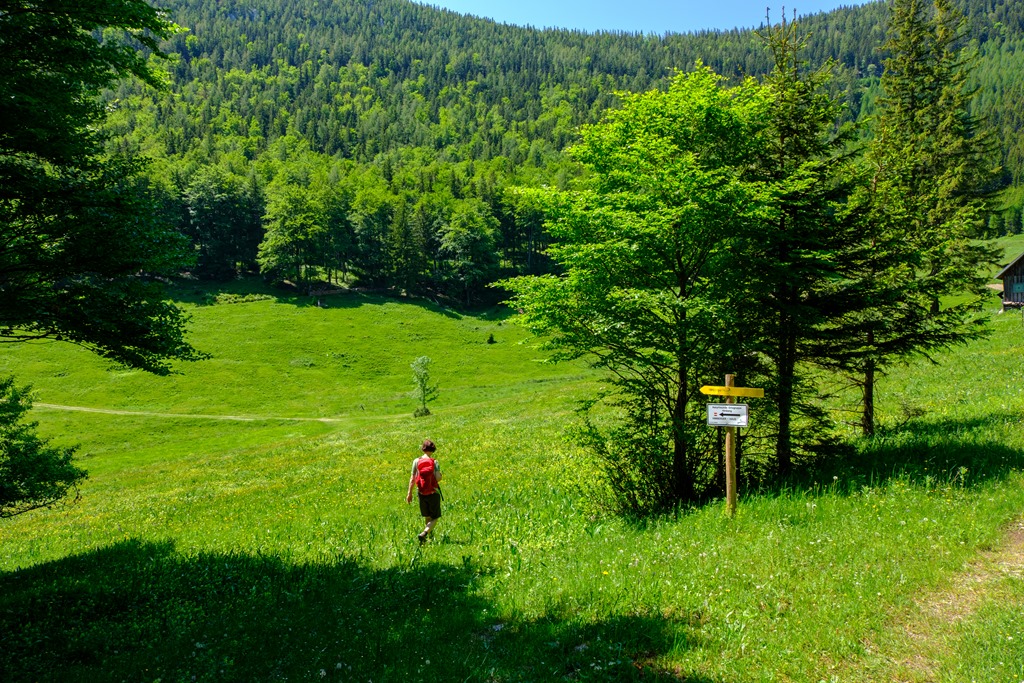 Schneeberg-vidéke legfinomabb édesvízi pisztráng halpecsenyéjét a Rohrbach im Graben-béli Marias Landban szolgálják fel, mint arról már néhányszor beszámoltam. Mióta felfedeztük, egy-egy szezonban Angikával többször is ellátogatunk oda. Idén első alkalommal. A kirándulást természetesen egy túrával kezdjük, hogy alaposan megéhezzünk. Ezúttal az Arbestalon át kaptatunk fel a fogaskerekű szintjére.