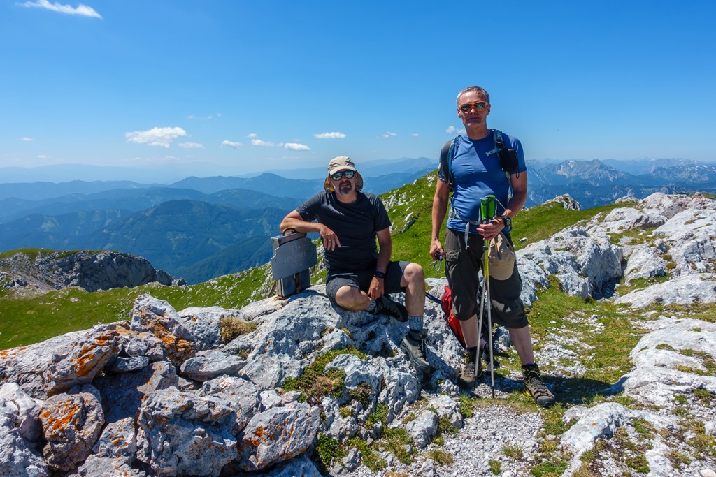 Következő célunk, a Fölzkogel felé vezető út továbbra is jól követhető. A 2022 m magas Fözkogel aznapi harmadik csúcsunk (12:15; lenti kép). Tudvalevő, Stájerország hagyományai szerint a „Stein” általában elő-csúcsot jelent, míg a „Kogel” megjelölés a magasabb, fő csúcsot illeti.