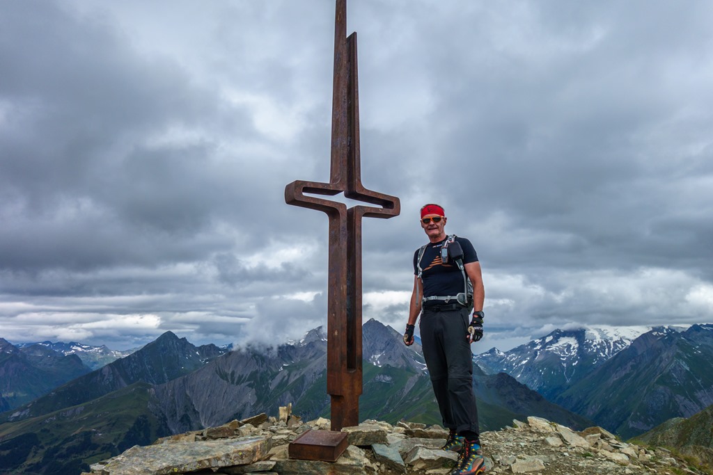 Később, amikor dolgozom a fotókon, feltűnik egy más (fa-?) kereszt, melyről eleinte azt hittem, helytelenül, hogy a Gorneren van. Kerestem is és felettébb csodálkoztam, hogy vajon a szemem káprázott-e, mert a Gorneren ilyesmit nem találtam. Mint kiderül, a Rotenkogelnek dupla csúcsa van. Ott, az északkeleti csúcson van egy másik kereszt is elhelyezve. A közismert, modern vaskereszt a délnyugati csúcson áll, ott, ahová a turistaút is torkollik.