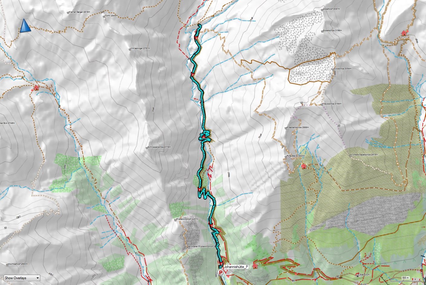 Aki innen tovább kíván menni, az a legnehezebb alpesi terepre számítson. Mi Angikával csak a menedékházat kívánjuk megszemlélni egy túra keretében. A Virgentalbéli Hinterbichl feletti fizetős parkolóból (1480m szinten) indulunk a Dorfertalban a hasonnevű (Dorferbach) patak (lenti kép) bal partján.